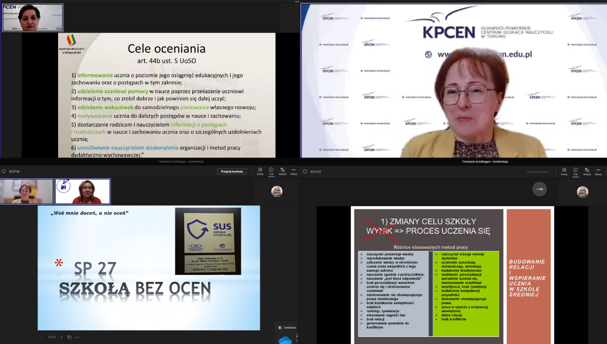 - Przełożenie teorii na praktykę zaprezentowała Anna Czarnowska, dyrektor Szkoły Podstawowej nr 27 w Toruniu, lider OK, wykładowca w różnych formach zwiększania kompetencji nauczycieli i dyrektorów szkół, ze szczególnym uwzględnieniem oceniania kształtującego i szkoły bez ocen, w wystąpieniu Szkoła Podstawowa nr 27 w Toruniu szkołą bez ocen.