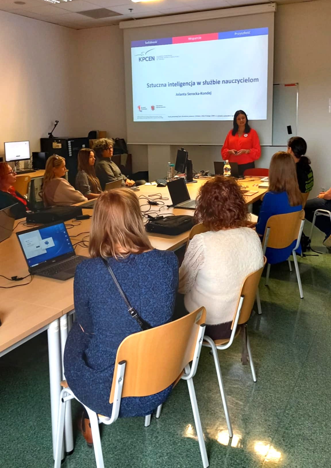 Podczas Forum zorganizowaliśmy warsztaty "Sztuczna inteligencja w służbie nauczycielom", które poprowadziła nasza konsultantka Jolanta Serocka-Kondej. Nauczyciele z dużą otwartością poznawali narzędzia AI służące personalizacji nauczania i przydatne w ocenianiu wspierającym uczenie się i rozwój. Grupa uczestników pracowała z zaangażowaniem!