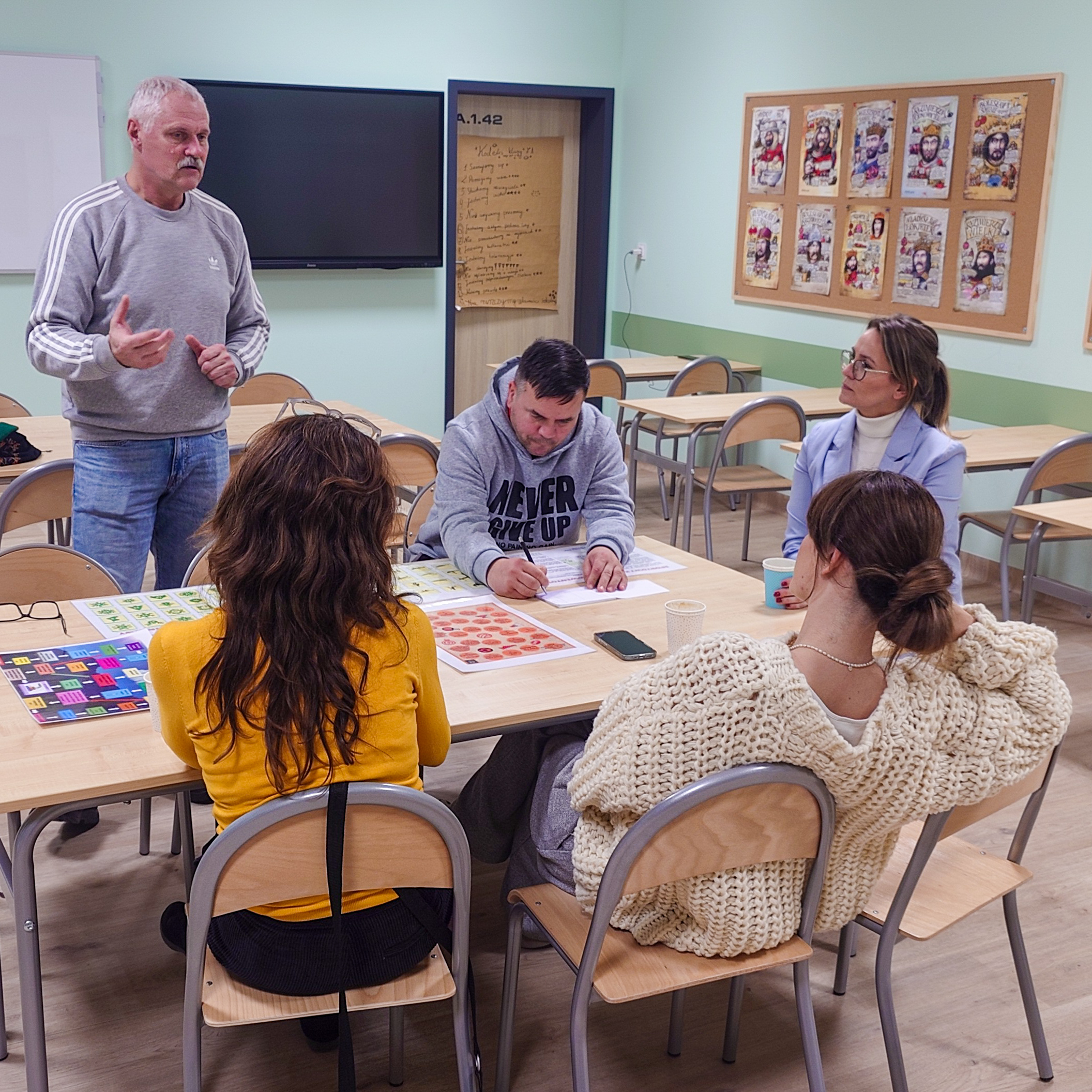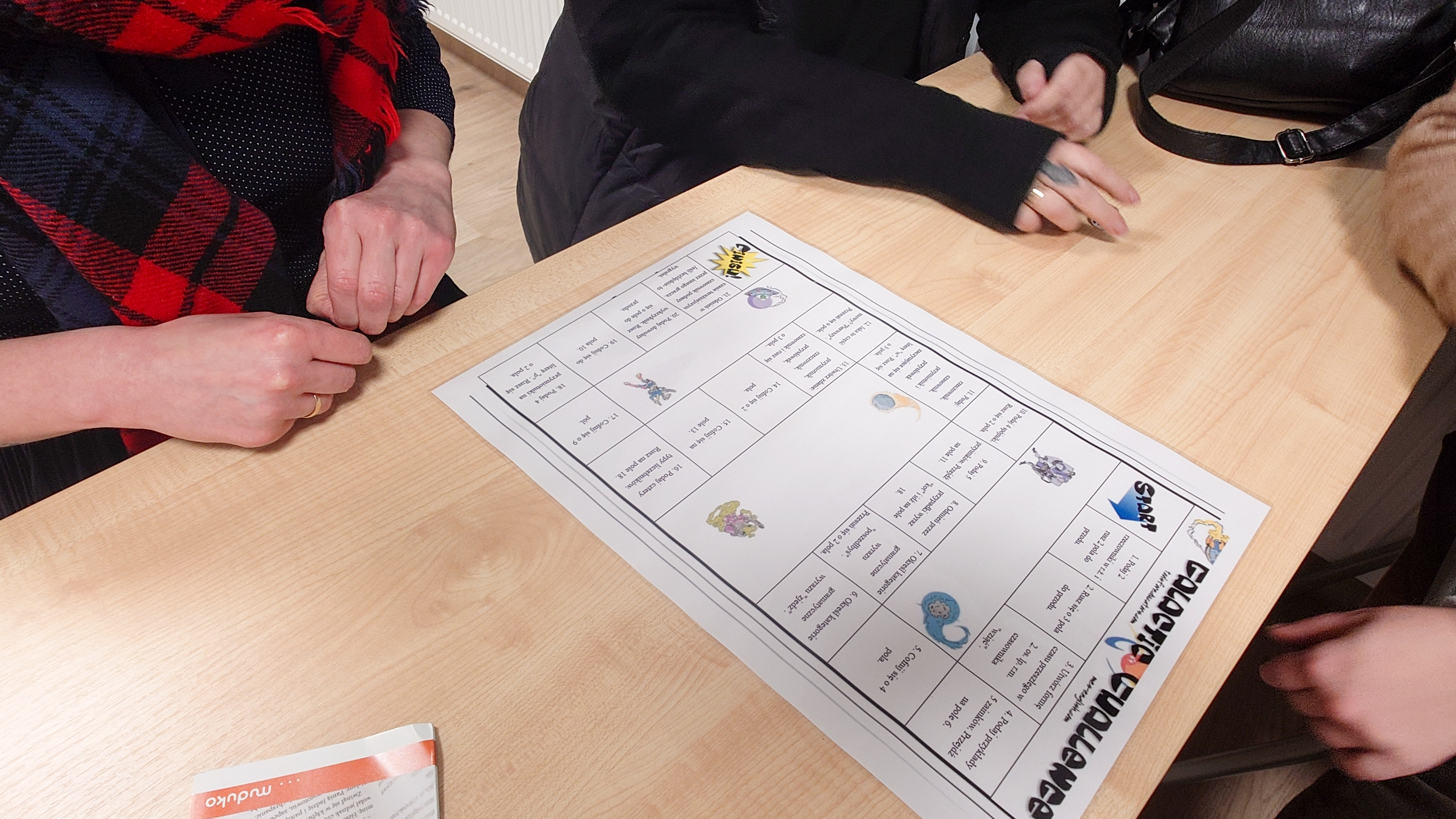 GrajMy w język polski – uczestnicy zagrali w planszówkę “Wyścigi z częściami mowy”, wspierającą naukę gramatyki;