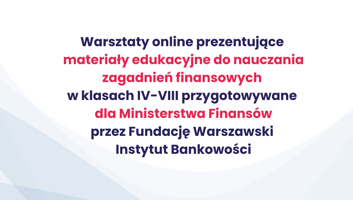 Ministerstwo Finansów powierzyło Fundacji Warszawski Instytut Bankowości opracowanie i dostarczenie do wszystkich szkół podstawowych w Polsce opracowanie i dostarczenie do wszystkich szkół podstawowych w Polsce nowoczesnych materiałów do nauczania finansów. To innowacyjny projekt, który wspiera rozwój edukacji ekonomicznej i finansowej w klasach IV-VIII.