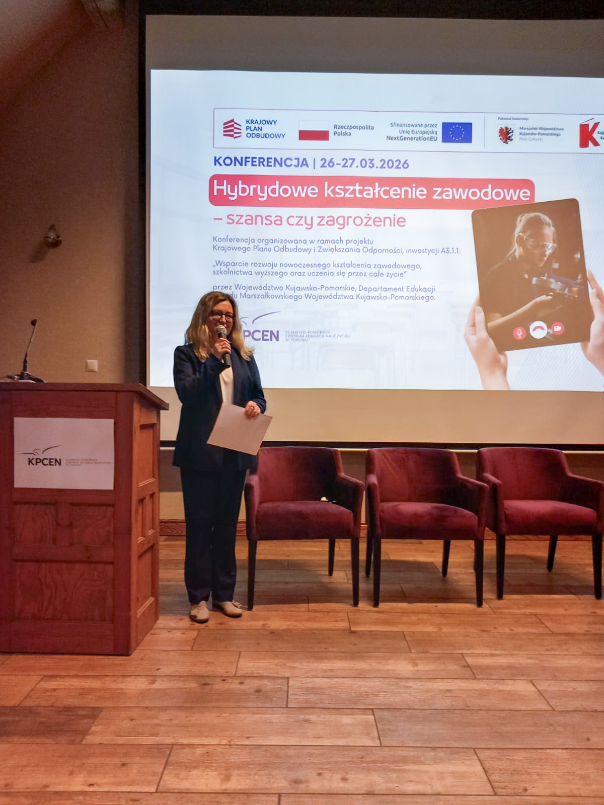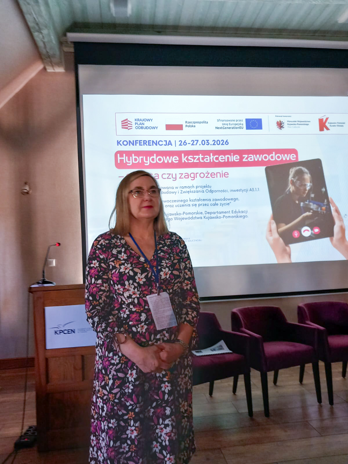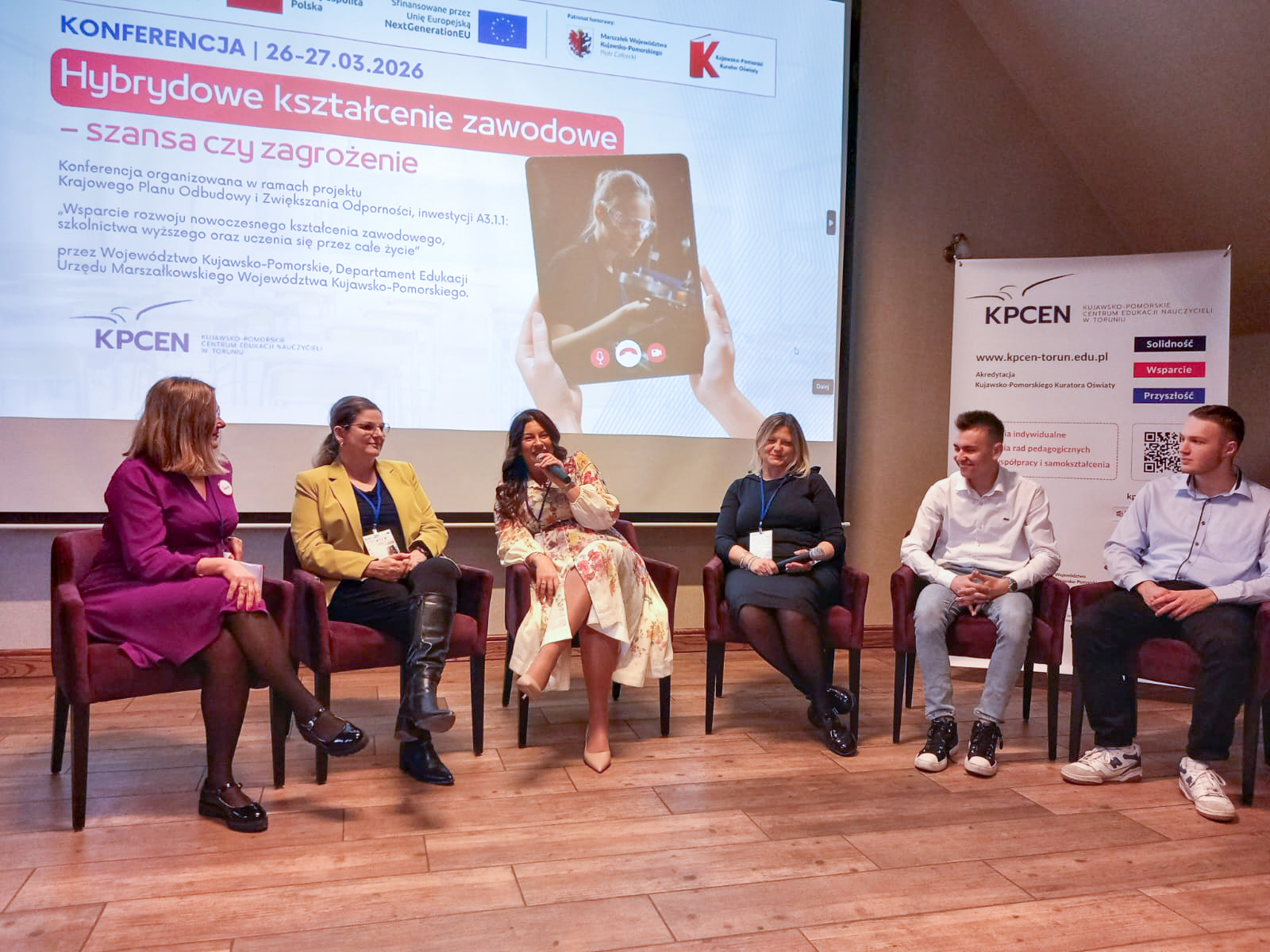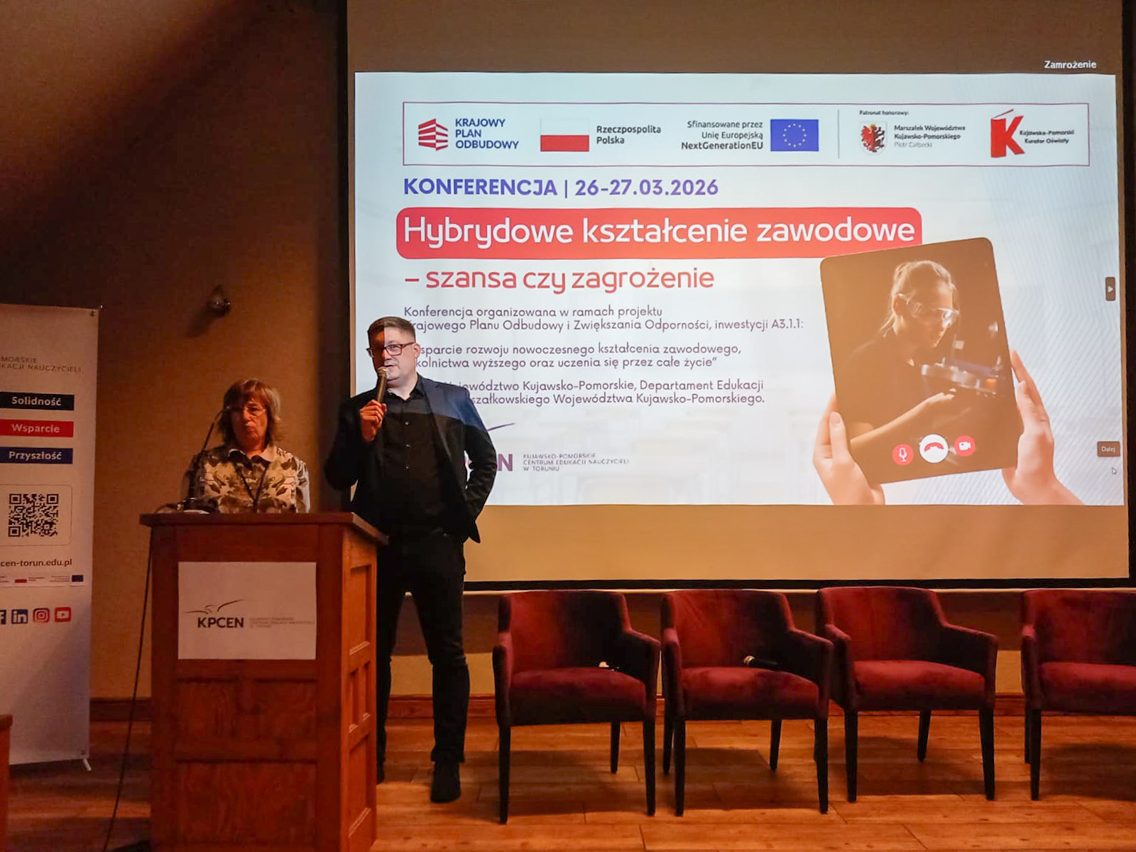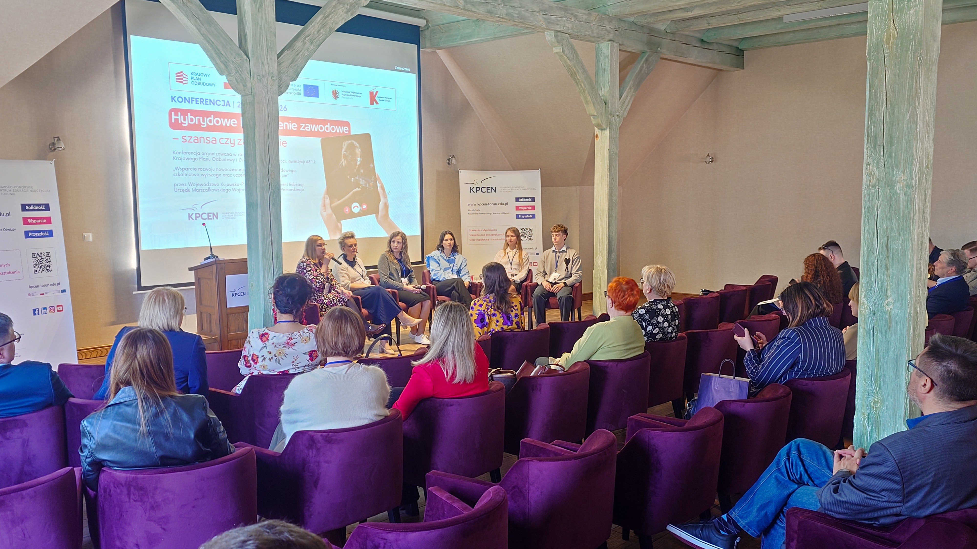 W dniach 26 i 27 marca 2026 r. spotkaliśmy się w Hotelu Pałac Poledno z uczestnikami przygotowanej przez toruński KPCEN konferencji „Hybrydowe kształcenie zawodowe – szansa czy zagrożenie” organizowanej w ramach projektu „Zbudowanie systemu koordynacji i monitorowania regionalnych działań na rzecz kształcenia zawodowego, szkolnictwa wyższego oraz uczenia się przez całe życie, w tym uczenia się dorosłych” Krajowego Planu Odbudowy i Zwiększania Odporności.