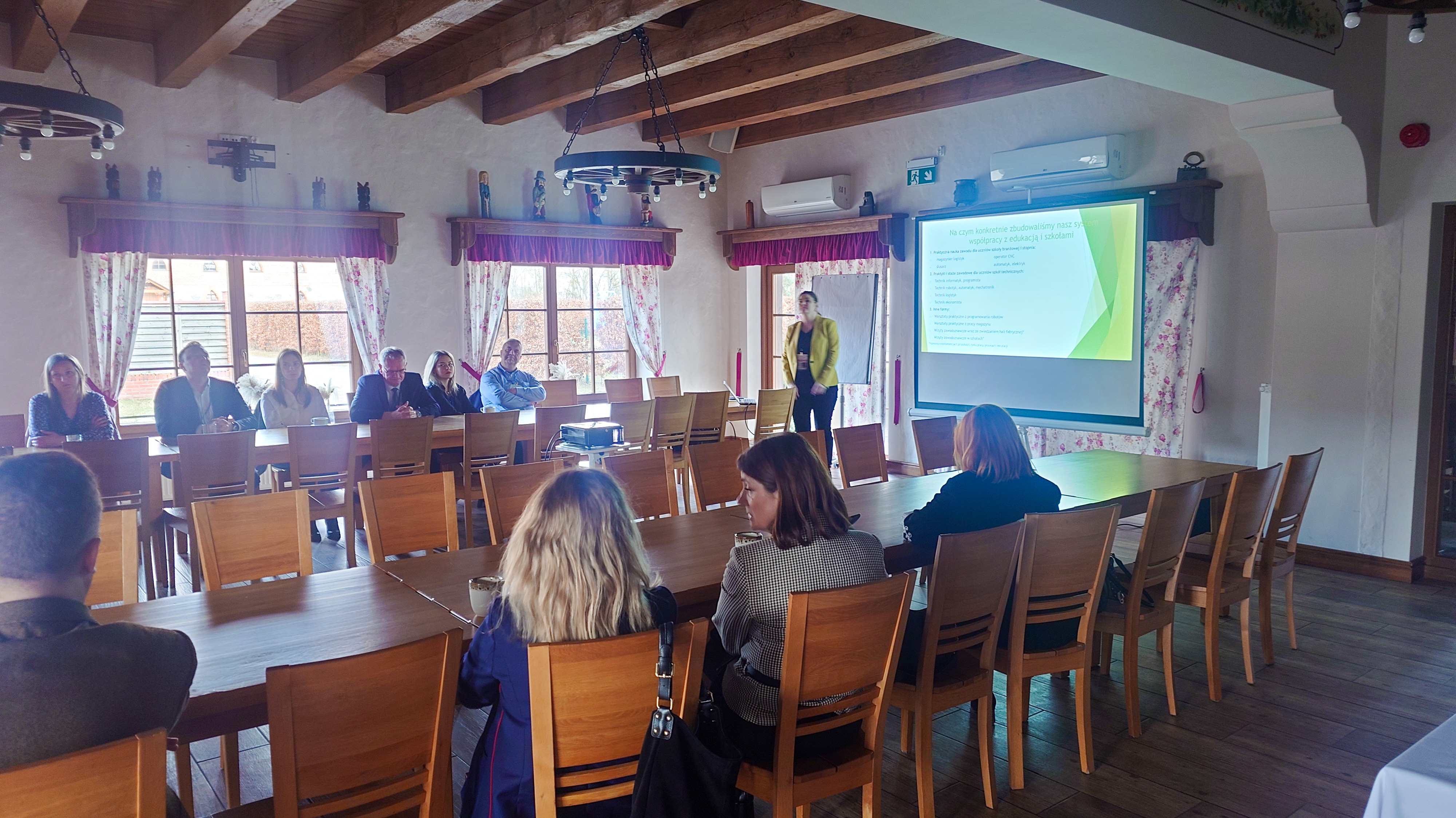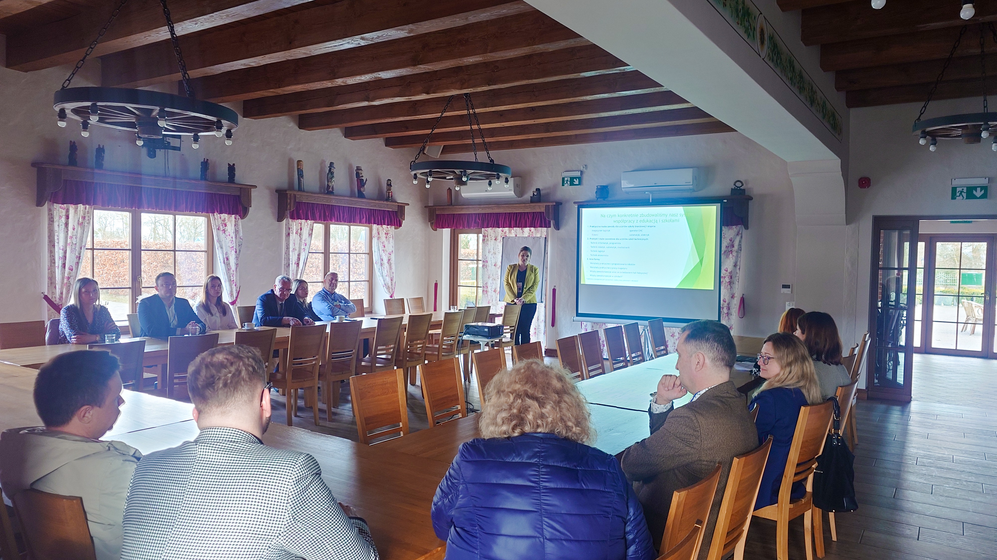 Spotkanie dotyczyło perspektywy przedsiębiorstwa produkcyjnego aktywnie zaangażowanego w organizację staży i praktyk w zawodach technicznych oraz budowanie trwałej współpracy ze szkołami technicznymi/branżowymi. Przedstawiona została geneza i ewolucja powstania systemu praktyk – potrzeba kadrowa, rozwijanie przedsiębiorstwa o pracę w młodzieżą, zaangażowanie w CRS i SDG. Omówiony został model organizacji praktyk stacjonarnych: zakres zadań powierzanych uczniom, rola mentorów, proces wdrażania w środowisko pracy oraz przykłady zawodów objętych programem. Zaprezentowane zostały również plany kierunków rozwoju współpracy w stronę elementów hybrydowych, przy jednoczesnym zachowaniu kluczowej roli praktyki w realnym środowisku produkcyjnym. Uczestnicy podjęli także refleksję nad preferencjami edukacyjnymi pokoleń Z i Alfa, wskazując zarówno szanse, jak i pułapki kształcenia hybrydowego w zawodach technicznych. Podsumowaniem stały się wnioski dotyczące czynników, które sprawiają, że uczniowie wracają do firmy – poczucie sensu pracy, realne zadania, wsparcie mentorskie oraz możliwość dalszego rozwoju zawodowego.