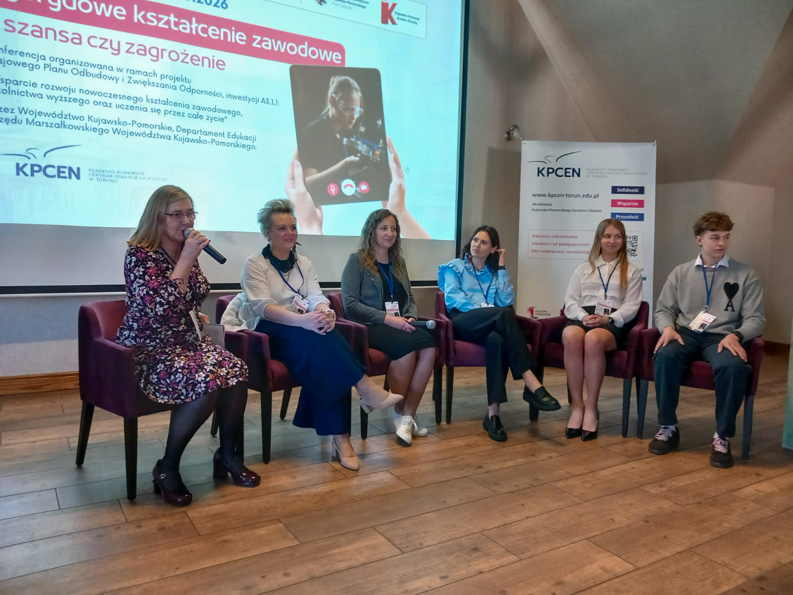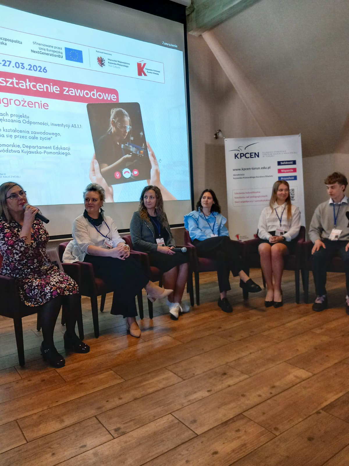 Część wykładową zamknął panel dyskusyjny „Szansa czy zagrożenie? Głos nauczycieli, uczniów i pracodawców”, który poprowadziła Dorota Andrzejewska z KPCEN w Toruniu. W rozmowie udział wzięły prelegentki: Małgorzata Laszenko, Wiktoria Kin i Aleksandra Łuczak oraz Sebastian Krzemiński i Bartosz Bukowski, uczniowie klasy IV w zawodzie technika transportu drogowego w Zespole Szkół Samochodowych w Toruniu.