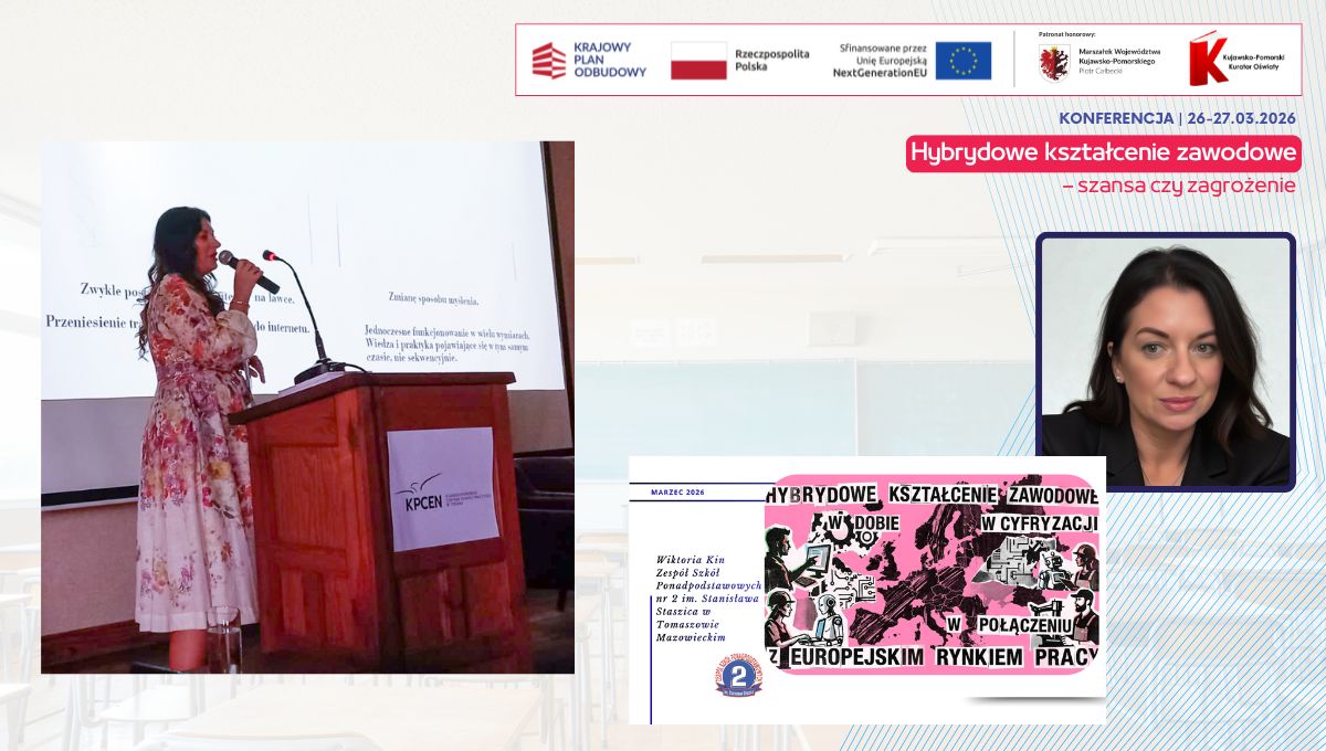 Wystąpienie zarysowało strategiczną perspektywę rozwoju edukacji zawodowej w kontekście europejskich trendów oraz wskazało warunki, które sprawiają, że hybrydowe kształcenie staje się realną szansą rozwojową, a nie zagrożeniem dla jakości i równości dostępu do edukacji.
