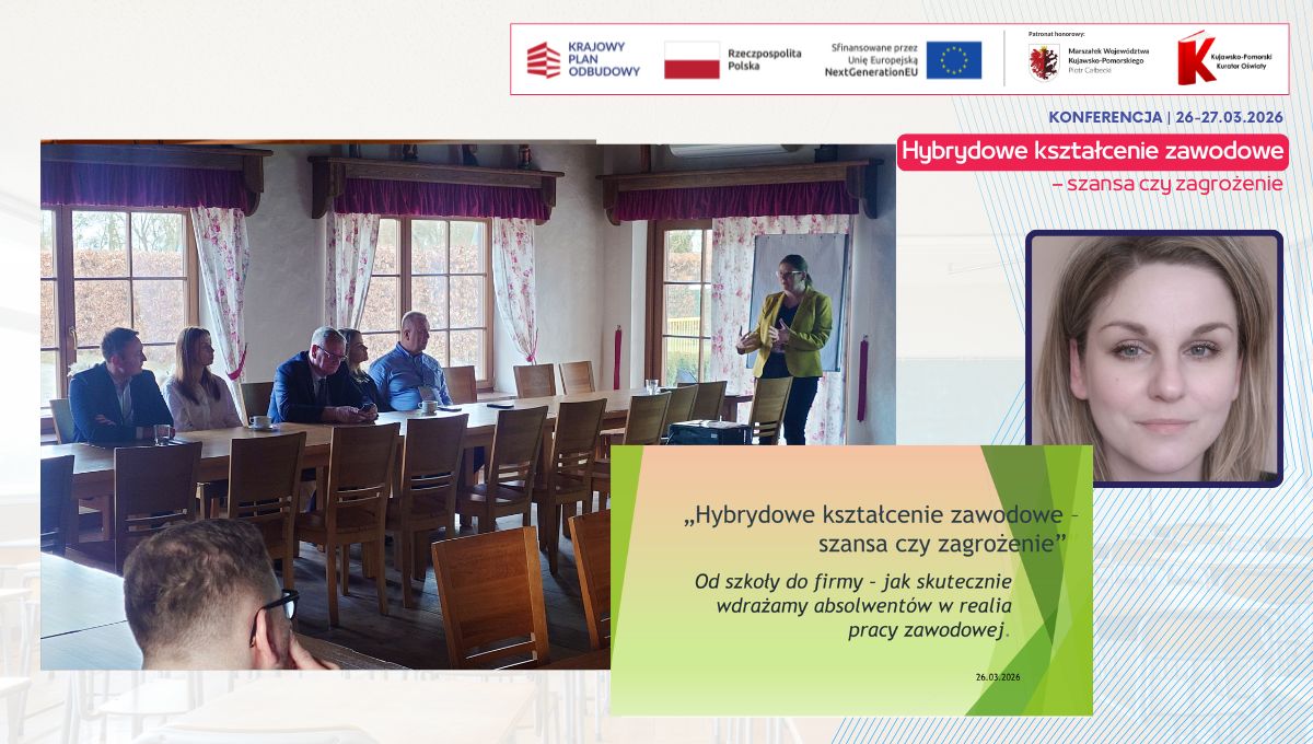 Konferencja stała się okazją do wymiany doświadczeń w zakresie hybrydowego kształcenia zawodowego. Dziękujemy wszystkim uczestnikom za obecność i pełne zaangażowanie w spotkania.