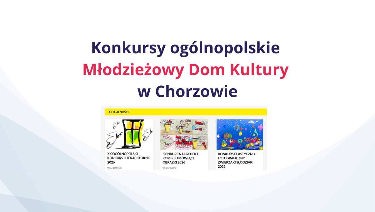 Departament Edukacji Urzędu Marszałkowskiego Województwa Kujawsko-Pomorskiego zachęca do udziału w ogólnopolskich konkursach organizowanych przez Młodzieżowy Dom Kultury w Chorzowie: