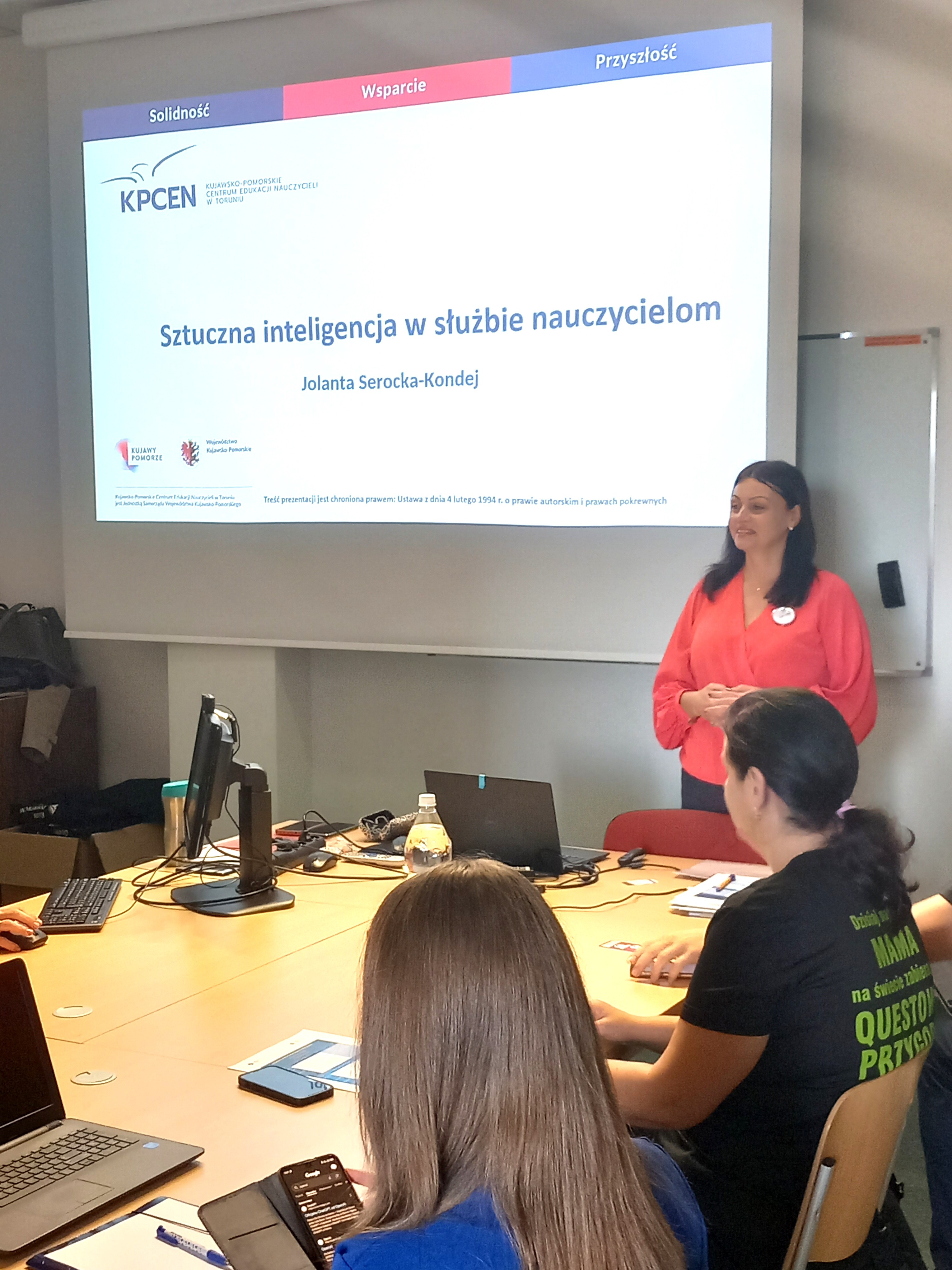 Podczas Forum zorganizowaliśmy warsztaty "Sztuczna inteligencja w służbie nauczycielom", które poprowadziła nasza konsultantka Jolanta Serocka-Kondej. Nauczyciele z dużą otwartością poznawali narzędzia AI służące personalizacji nauczania i przydatne w ocenianiu wspierającym uczenie się i rozwój. Grupa uczestników pracowała z zaangażowaniem!