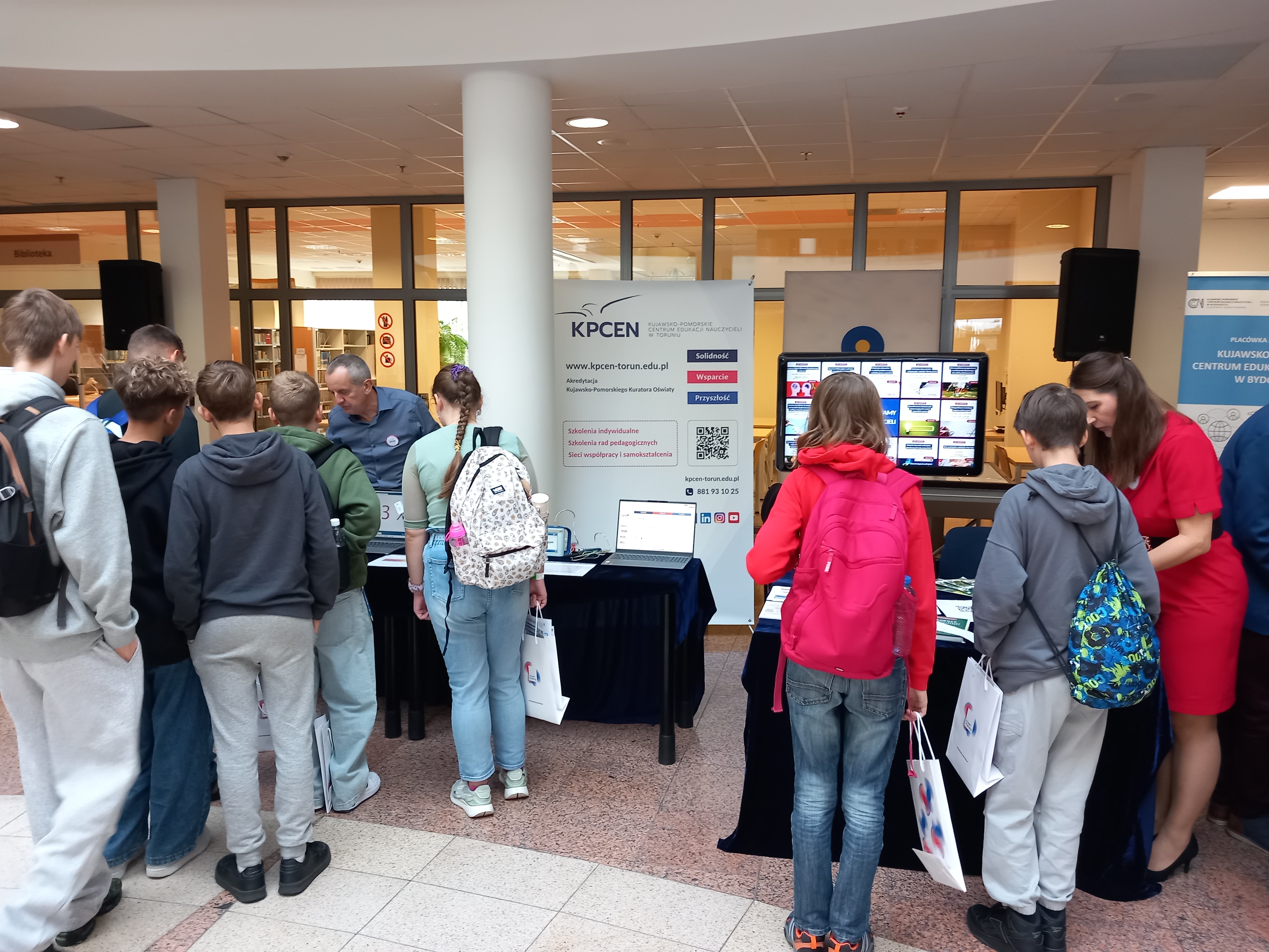 Dodatkowo, na specjalnie przygotowanym stoisku z materiałami promocyjnymi pracownicy KPCEN w Toruniu prezentowali ofertę szkoleniową dla nauczycieli i przygotowali angażujące edukacyjne zadania.