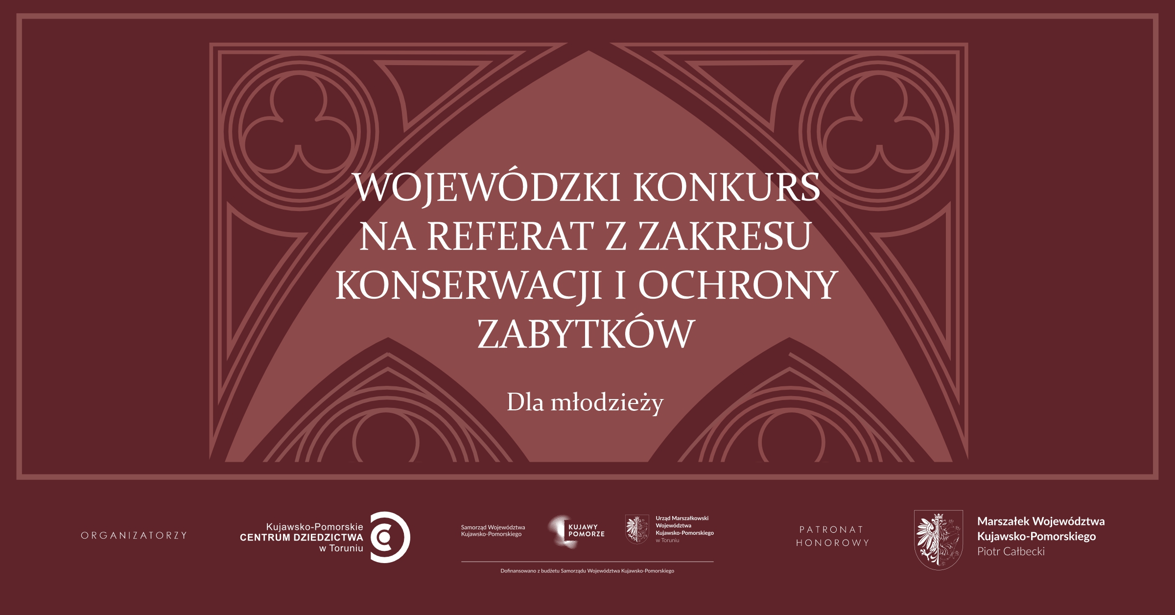 Kujawsko-Pomorskie Centrum Dziedzictwa w Toruniu i Departament Edukacji Urzędu Marszałkowskiego Województwa Kujawsko-Pomorskiego zapraszają do udziału w Wojewódzkim konkursie dla młodzieży na referat z zakresu konserwacji i ochrony zabytków.