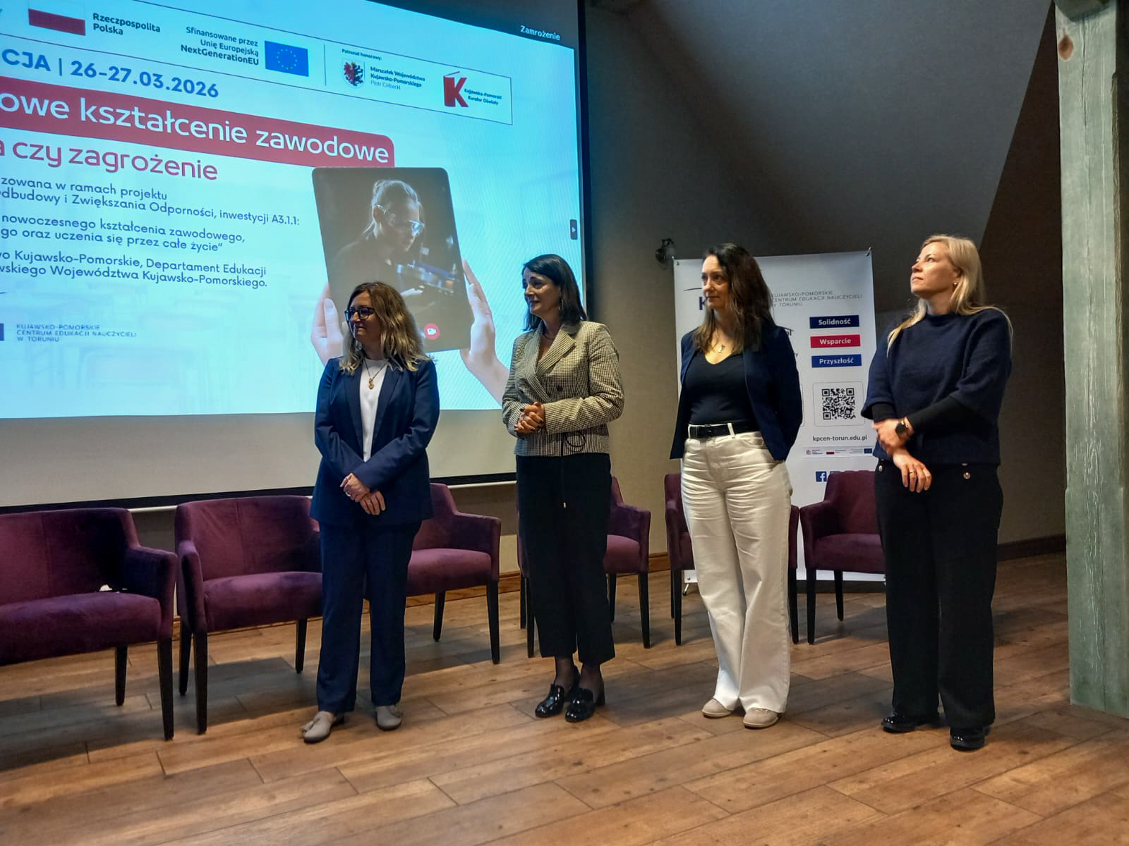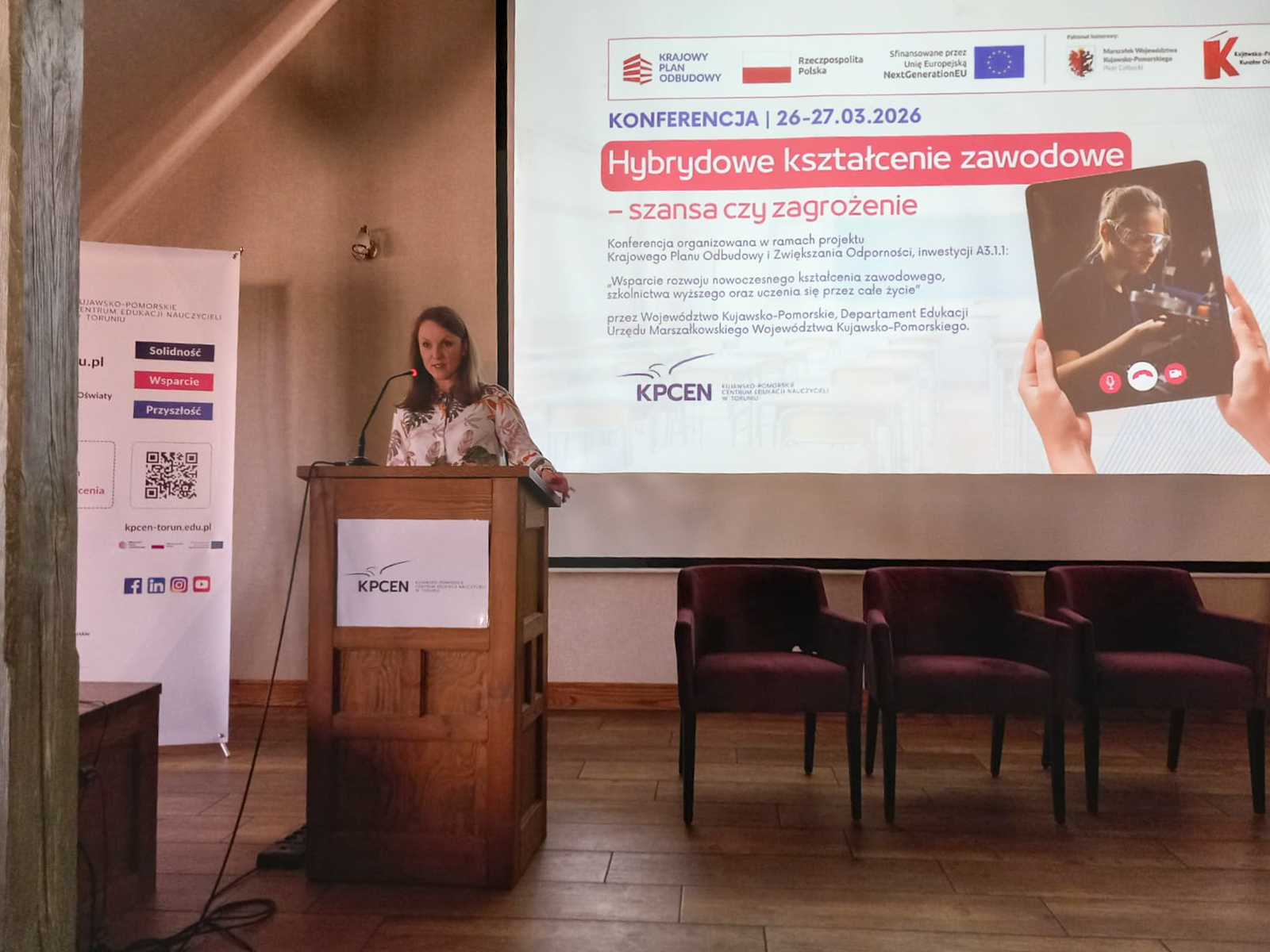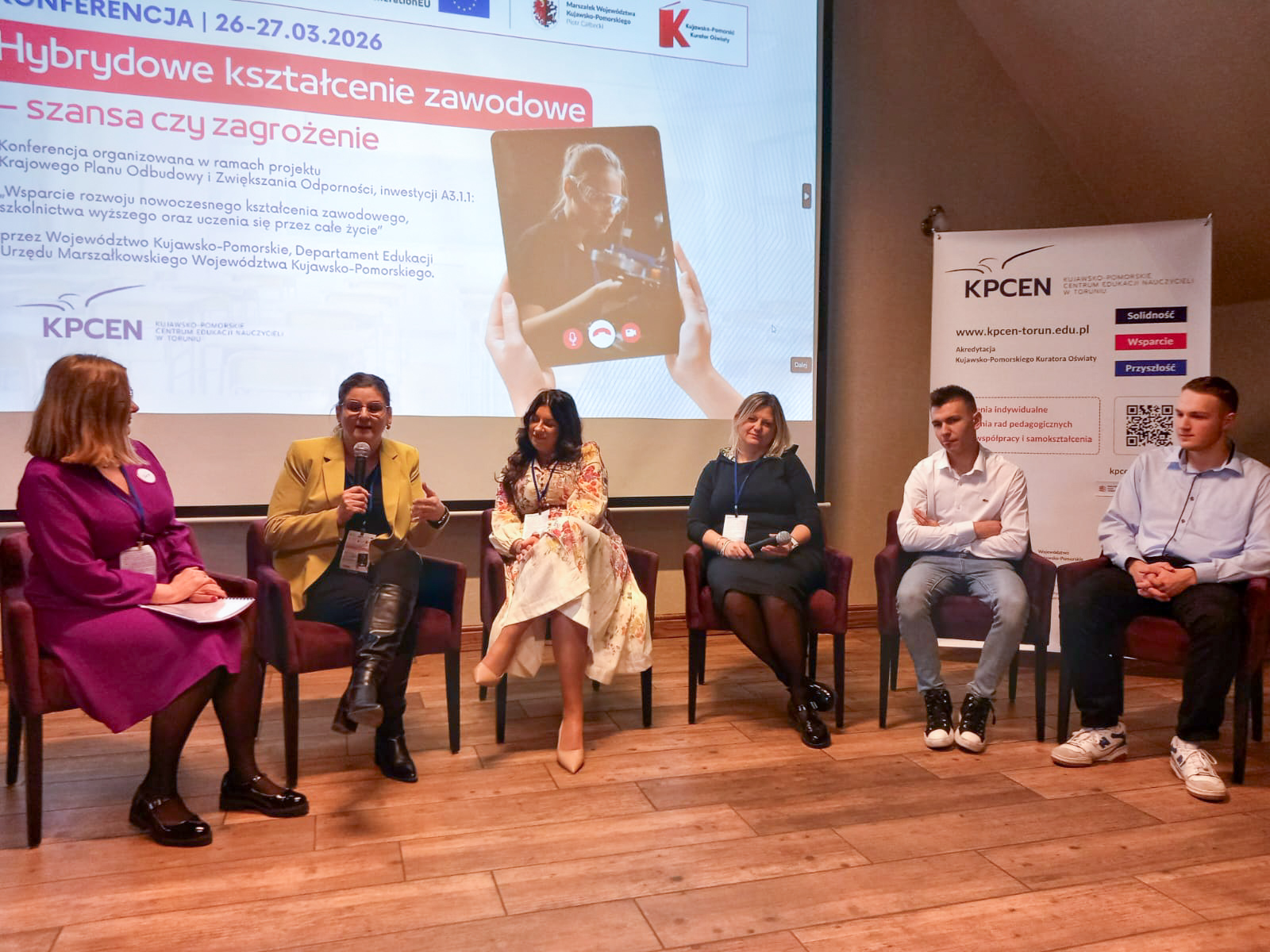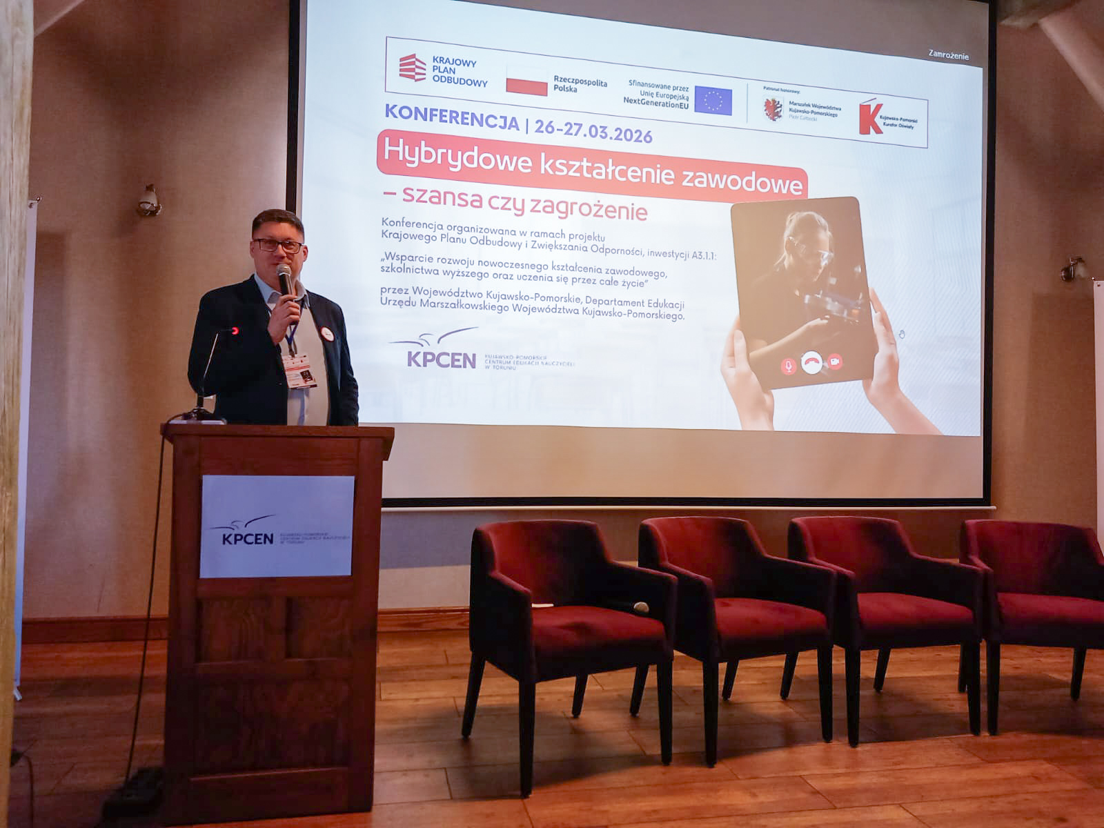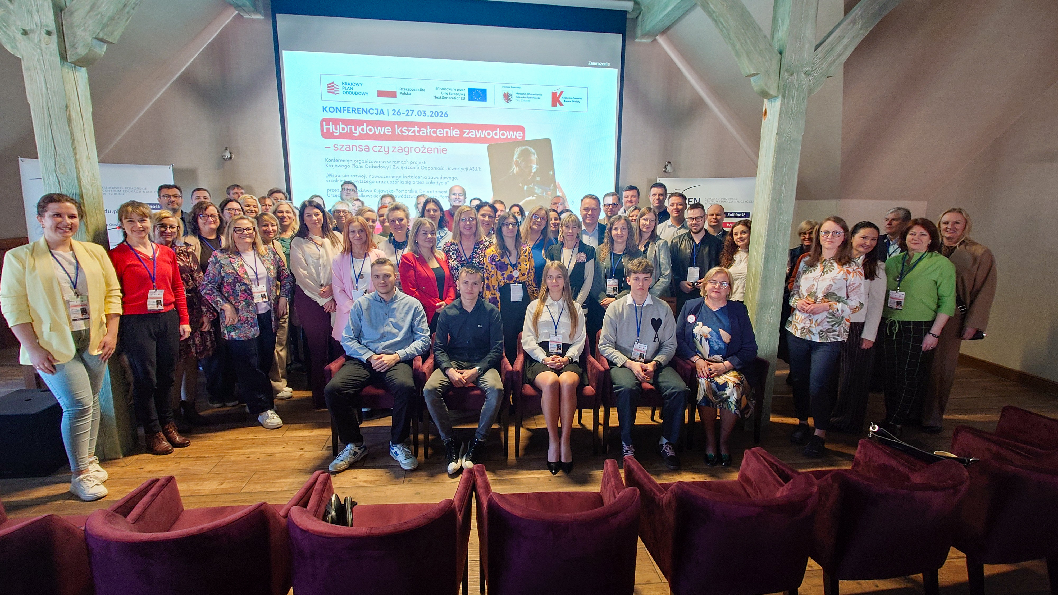 W dniach 26 i 27 marca 2026 r. spotkaliśmy się w Hotelu Pałac Poledno z uczestnikami przygotowanej przez toruński KPCEN konferencji „Hybrydowe kształcenie zawodowe – szansa czy zagrożenie” organizowanej w ramach projektu „Zbudowanie systemu koordynacji i monitorowania regionalnych działań na rzecz kształcenia zawodowego, szkolnictwa wyższego oraz uczenia się przez całe życie, w tym uczenia się dorosłych” Krajowego Planu Odbudowy i Zwiększania Odporności.
