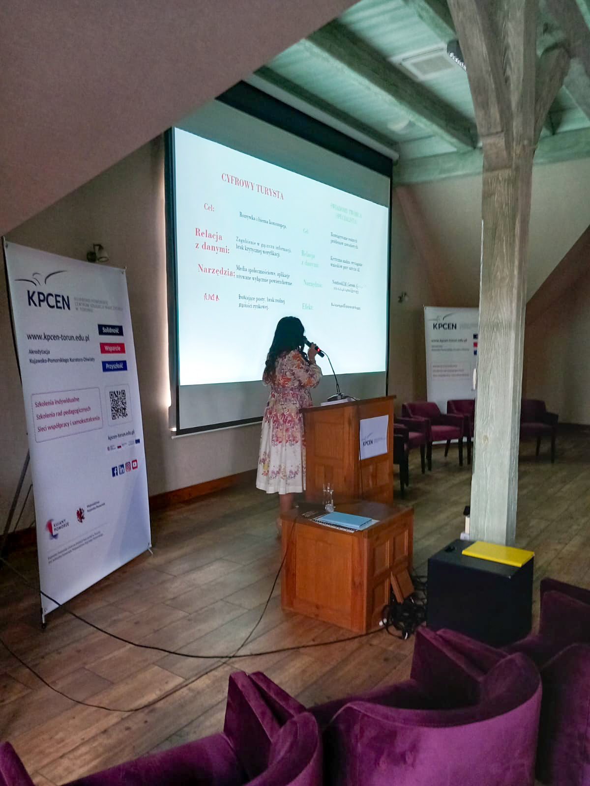 Kolejną prelekcję, pt. „Hybrydowe kształcenie zawodowe w dobie cyfryzacji w połączeniu z europejskim rynkiem pracy” wygłosiła Wiktoria Kin, nauczycielka przedmiotów zawodowych branży reklamowej.